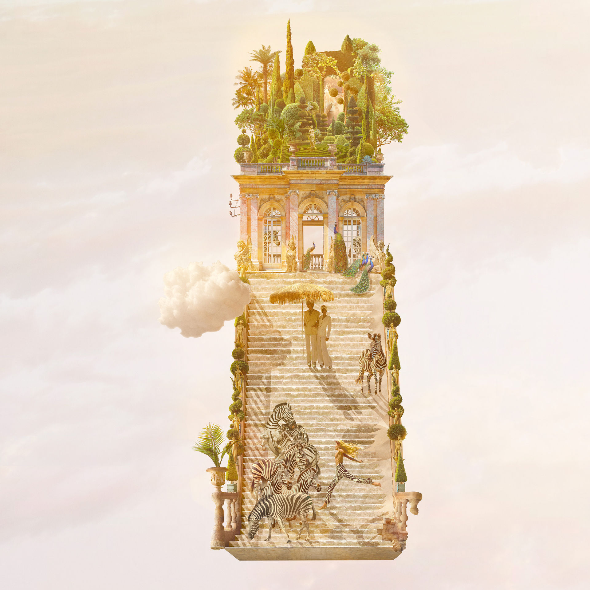 These first flying houses in the series were photographed by chance in the street, and the photomontage was rudimentary, composed of about ten elements. Limited by the lack of definition and the size of the sensor of his Canon 5D Mark II, he changed his method and decided to create a gigantic puzzle. He now photographs a facade in several pieces to obtain an even more detailed result. These latest works measure 2 x 2 meters and use hundreds of photos. His Photoshop files can contain 1,500 layers and weigh 32 gigabytes.